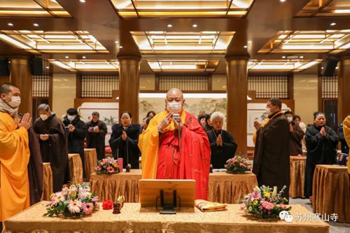 2月9日,歲在壬寅正月初九,幸逢帝釋天尊圣誕日。為感恩三寶慈光加被,感恩諸天護持,道場安和,本寺在和合精舍舉行新春祈福禮供三寶諸天法會。秋爽大和尚率領(lǐng)僧俗二眾、諸功德主、護法居士虔誠禮拜。法會現(xiàn)場施設(shè)凈食、香花、鮮果,以供養(yǎng)十方三寶及護世諸天。