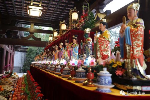 齋天法會壇場設(shè)佛、法、僧三寶席、諸天及其侍從的座席。一切的供品、擺設(shè)應(yīng)當極盡莊嚴、清凈,法會的禮贊唱誦力求如法如儀;茶水、供品、菜蔬也要潔凈新鮮。供佛齋天的儀式包括熏壇灑凈、請圣、上供、送圣等。