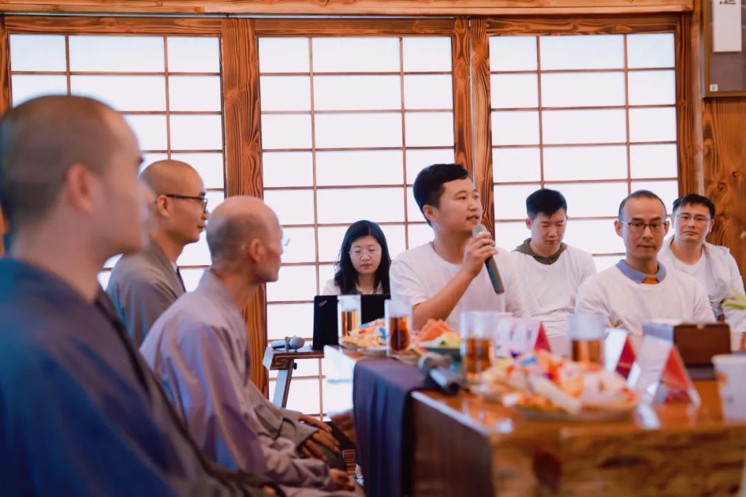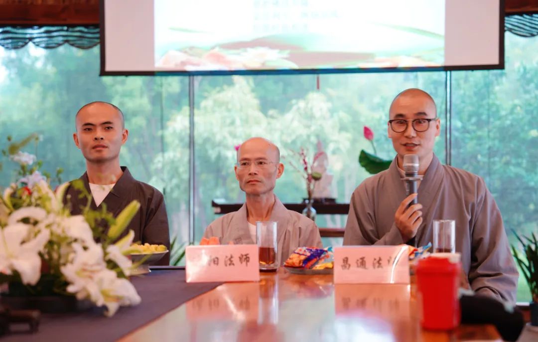 同修法師主持心得分享交流會,與達陽法師、演心法師、昌通法師一起為學(xué)員答疑解惑。