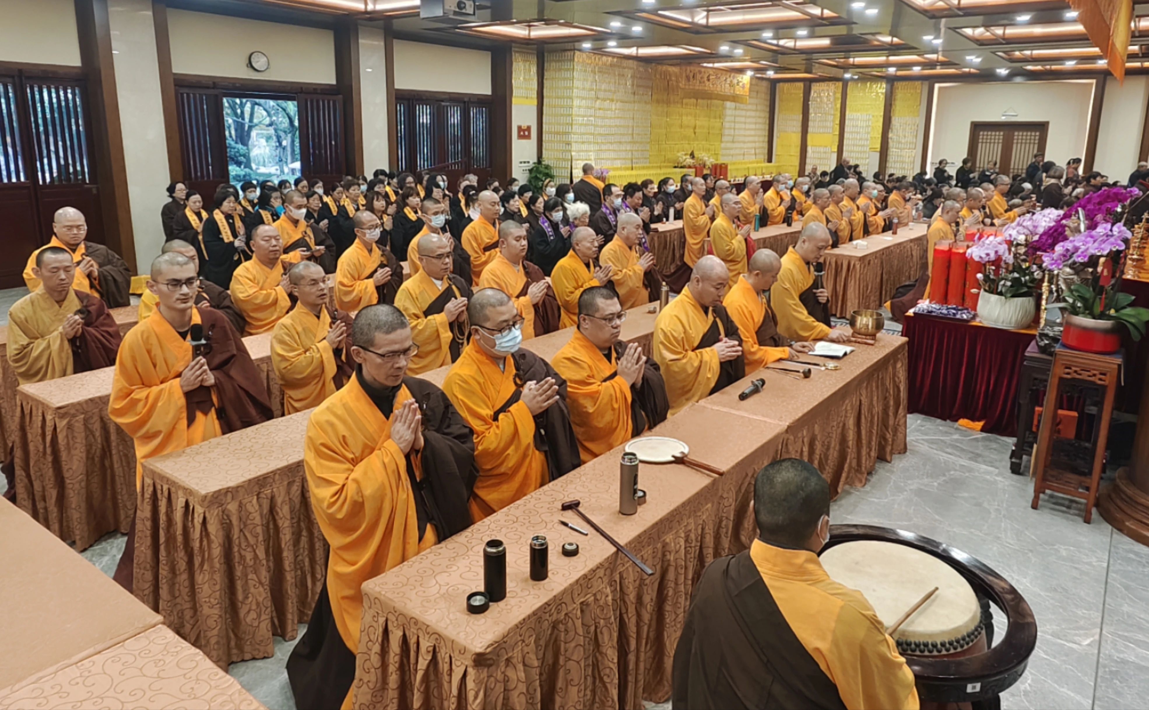 11月12日,梵唄聲和,佛樂齊鳴,本寺為期21天的華嚴(yán)共修法會功德圓滿,法會期間,大眾同誦八十一卷《大方廣佛華嚴(yán)經(jīng)》,唱誦“華嚴(yán)字母”。妙音繞壇城,莊嚴(yán)殊勝。諸佛降吉祥,人天生歡喜!