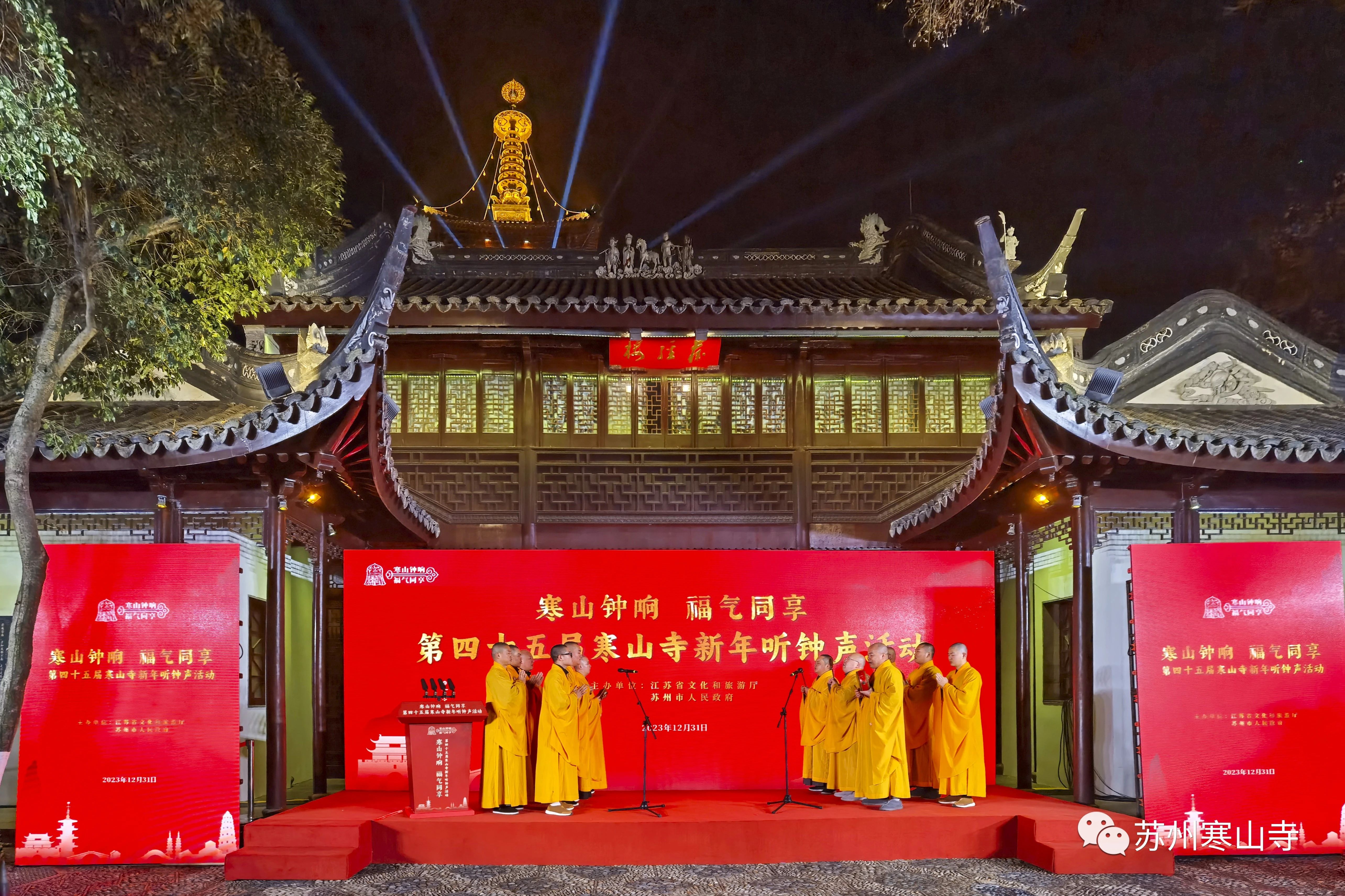 寒山古鐘,傳響千年,每到跨年夜,一百零八記鐘聲在寒山寺敲響,是專屬于蘇州人的跨年儀式感。今年,寒山寺也迎來了第四十五屆新年聽鐘聲活動。本次聽鐘聲活動以“寒山鐘響,福氣同享”為主題,與香港、臺灣、日本、韓國等地聯(lián)動,借鐘聲互贈祝福,共度佳節(jié),迎接新年。