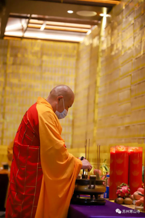 農(nóng)歷七月十五(8月22日)佛歡喜日,寒山寺舉行盂蘭盆法會(huì)。本寺方丈秋爽大和尚主法,恭誦《佛說盂蘭盆經(jīng)》,上盂蘭盆供。