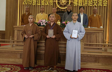 2019年10月22日至23日,由浙江省佛教協(xié)會(huì)主辦、衢州市佛教協(xié)會(huì)協(xié)辦、衢州天寧寺承辦的“2019浙江省漢傳佛教講經(jīng)交流會(huì)”在衢州天寧寺隆重舉行。最終,本次講經(jīng)交流會(huì)決出一等獎(jiǎng)三名,二等獎(jiǎng)四名,三等獎(jiǎng)七名。正心、常度、正信法師榮獲一等獎(jiǎng);妙慧、道欣、本心、慧濟(jì)法師獲二等獎(jiǎng),隆妙、定賢、常濟(jì)、覲上、界法、演修、悟真法師獲三等獎(jiǎng),智平、慧源、圣一、悟然、門杰法師獲鼓勵(lì)獎(jiǎng)。