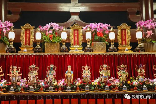 齋天法會壇場設(shè)佛、法、僧三寶席、諸天及其侍從的座席。一切的供品、擺設(shè)應(yīng)當極盡莊嚴、清凈,法會的禮贊唱誦力求如法如儀;茶水、供品、菜蔬也要潔凈新鮮。供佛齋天的儀式包括熏壇灑凈、請圣、上供、送圣等。