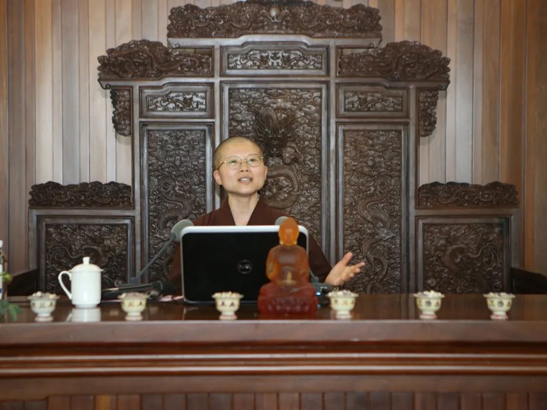 講經(jīng)現(xiàn)場(chǎng)清凈莊嚴(yán),與會(huì)大眾熱情高漲?,F(xiàn)場(chǎng)問答環(huán)節(jié)中,聽眾先后向講經(jīng)法師提出“如何驅(qū)趕蚊蟲”“人間佛教與傳統(tǒng)佛教側(cè)重點(diǎn)的不同”“如何處理與不信佛的家人間的關(guān)系”等問題。在回答“佛法與世間法區(qū)別”的提問時(shí),妙道法師指出,佛法導(dǎo)向菩提涅槃,世間法導(dǎo)向煩惱生死,二者確有不同;但佛法也離不開世間法,如《六祖壇經(jīng)》云:“佛法在世間,不離世間覺,離世覓菩提,恰如求兔角”。因此,佛法與世間法非一非異。面對(duì)“在奉侍母親和入寺禮佛間如何抉擇”這一問題,妙青法師以普賢菩薩十大愿王中“恒順眾生”的精神鼓勵(lì)聽眾以孝順母親為先,并說明了“孝道即是佛道,學(xué)佛不違孝親”的道理。四位法師善應(yīng)群機(jī)、辭辯無礙,與會(huì)大眾在飽餐法味之余,對(duì)講經(jīng)法師連連稱贊。