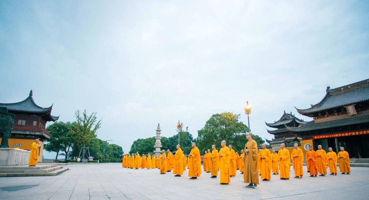 2023年10月1日上午6時(shí),江蘇佛學(xué)院寒山學(xué)院全院師生、重元寺常住法師在重元寺水天佛國(guó)廣場(chǎng)前舉行升旗儀式,熱烈慶祝中華人民共和國(guó)成立74周年。同心慶?華誕,共寄愛?國(guó)情,共同祈愿?jìng)ゴ蟮淖鎳?guó)繁榮富強(qiáng),人民幸??禈?。