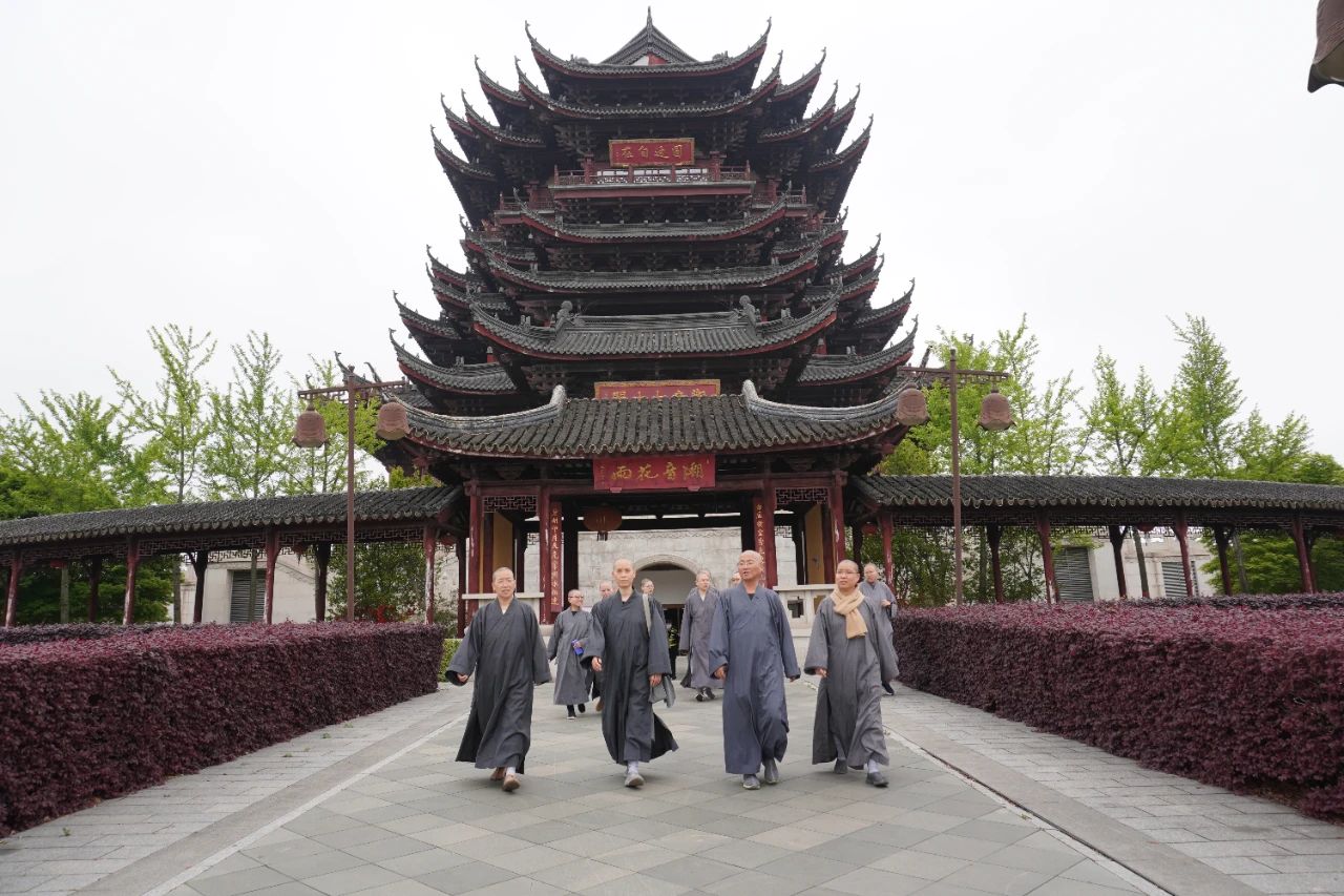 4月21日上午,杭州佛學院女眾部研究生班一行15人在智儀法師、乾凈法師的帶領下,到江蘇佛學院寒山學院參訪交流。