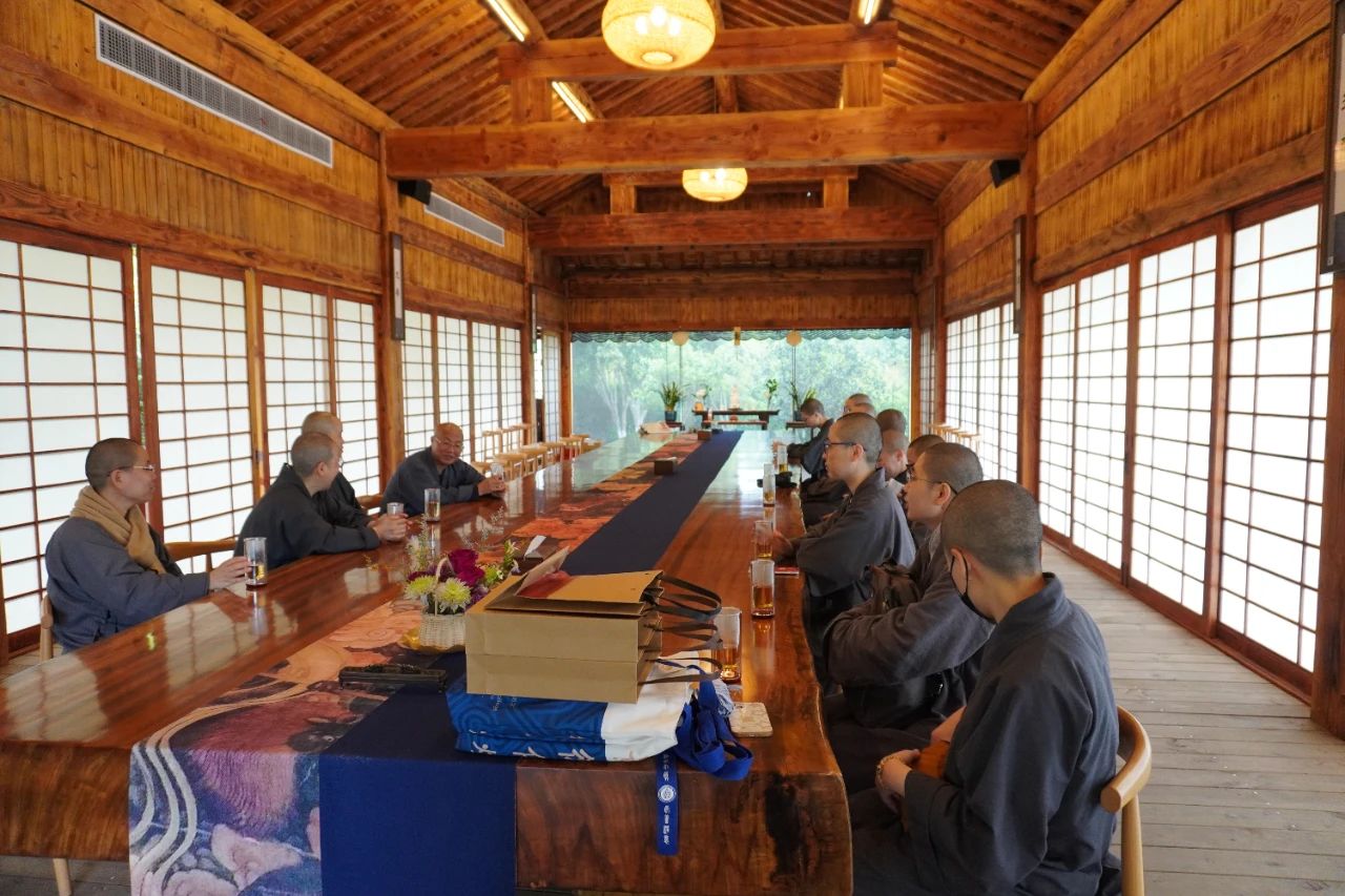 江蘇佛學院寒山學院副院長兼教務長宗澤法師、副教務長耀相法師接待參訪團,帶領參觀重元寺、寒山學院教學樓,并進行座談交流。