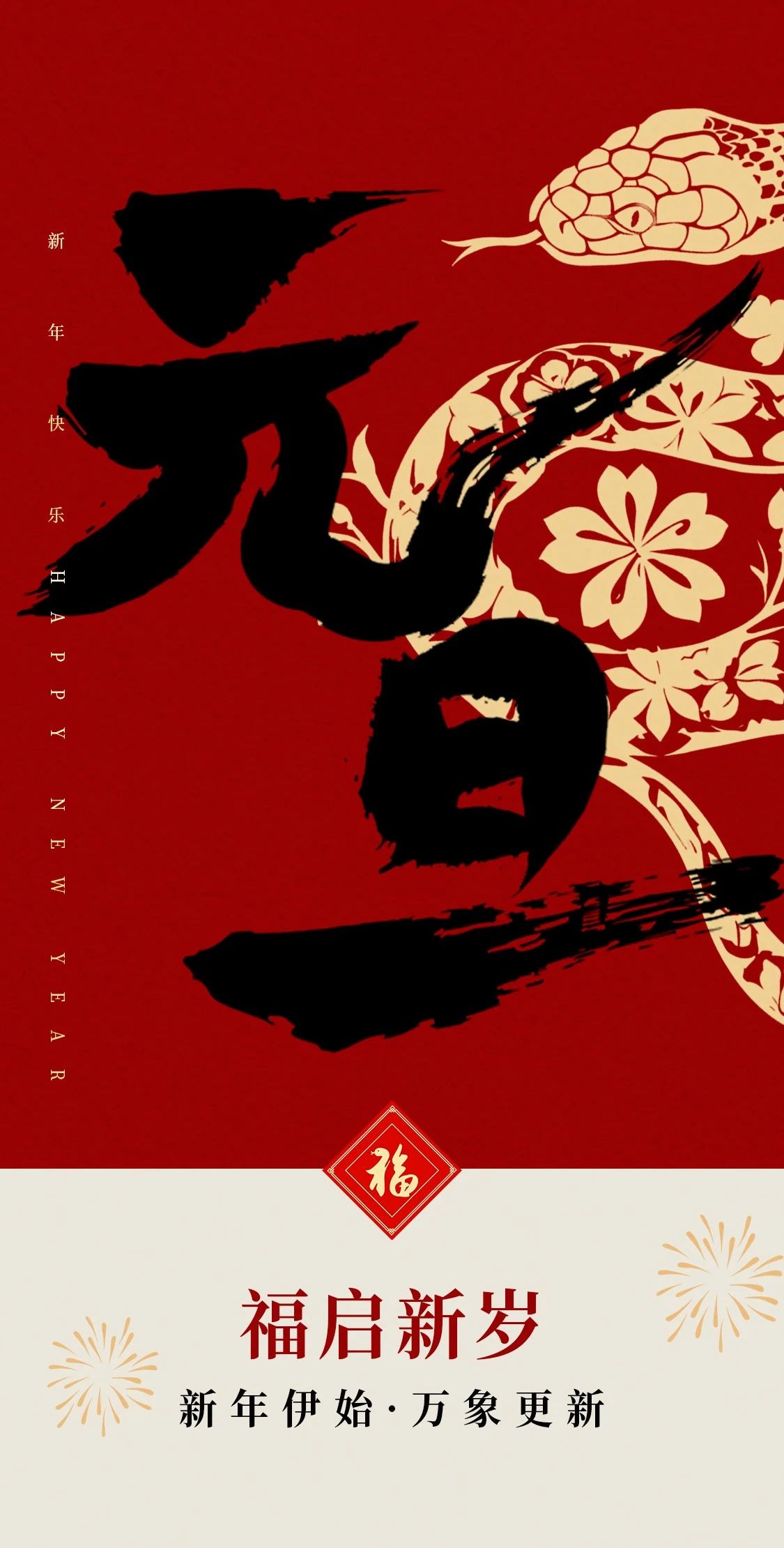 新年快樂天地春暉近,日月開新元。