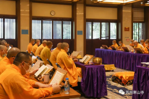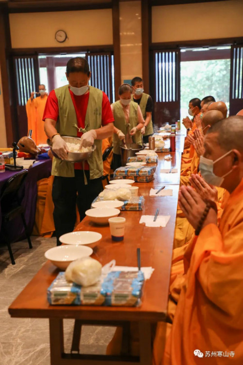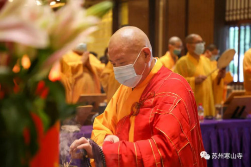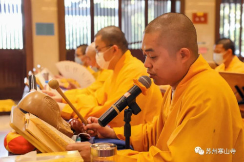 農(nóng)歷七月十五(8月22日)佛歡喜日,寒山寺舉行盂蘭盆法會(huì)。本寺方丈秋爽大和尚主法,恭誦《佛說盂蘭盆經(jīng)》,上盂蘭盆供。